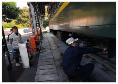 设置防护信号,开始进行客车双管供风改单管供风作业!11月6日,中国铁路成都局集团有限公司成都车辆段库内K20道整修线上,车辆乘务员...
