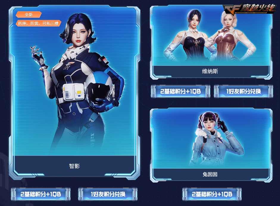 4月期间还有全新防摔防雷可拓三槽的女性角色智影加入好友藏宝阁奖池,CFer邀请好友即可获取好友积分,累计活跃3天后还可以解锁邀请新玩家获取好友积分的机会,累计好友积分即可免费兑换奖池内角色或兑换优惠购买裁决-羽掣皮肤的珍稀机会。