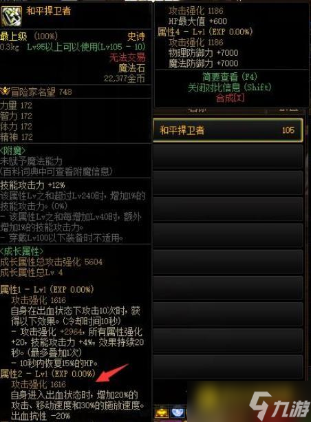 和平捍卫者基础攻击5604,自身出血触发“攻击强化2964、20属强、4%技能攻击力”,提升率22.59%,外加“20%攻速”。