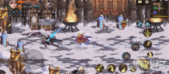 勇士们攻击 “狮子头” 时,需要先后击败它召唤出来的左右手,才能攻击它的本体。这里建议勇士们使用具有延迟伤害、并且范围较广的技能进行快速击杀。