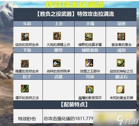 相比较特效属强流,这套“特效攻击拉满流”,总攻击强化数值1811.77%,属于特效伤害最高的搭配。没军团项链可替换无尽的愤怒连击。