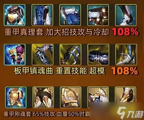 1、“真学”重甲防具首选,可以大幅加觉醒技能和冷却时间,强度差不多108%左右,上限还能更高;