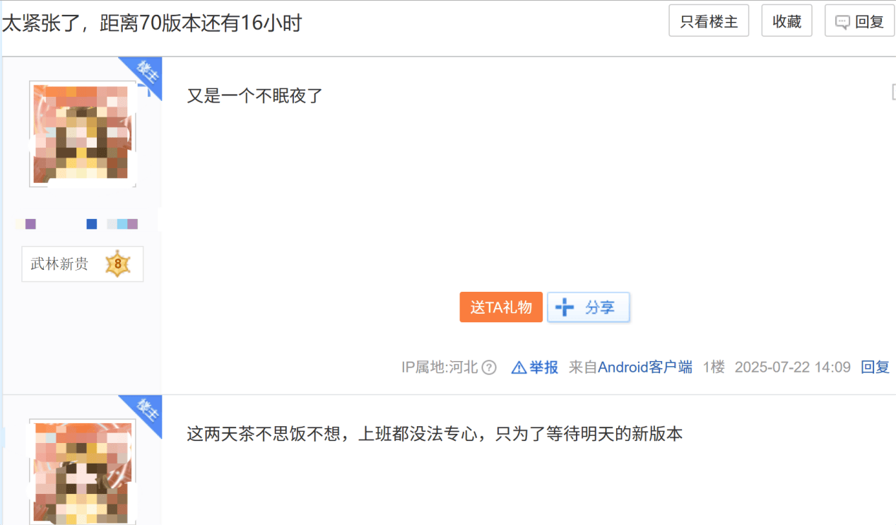 而如今的DNF手游,在玩家群体中几乎也享有以上相同的待遇——不少玩家也正和我们一样,为游戏的70级版本摩拳擦掌。有人晒出自己老版本游戏仓库的截图合影留念,有人提前找好攻略准备在开服第一时间打速通,还有人早已请好了假就等游戏更新结束的那一刻。