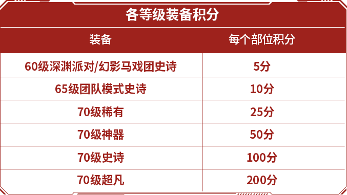 首先就是之前在周年庆直播中提到过的装备积分系统,这是一种全新的评定装备养成进度的方式,用官方放出的“狠话”来说,就是稀有、神器、史诗装备,在新版本中均有一战之力。说得更直白点,就是不管玩家现在穿戴什么品质的装备,当你的装备积分达到一定数值后,便能解锁同品质下更强的套装加成效果。这样一来,即便玩家在70版本前期刷不出史诗装备,靠着现有装备的积分加成,也能更顺利地度过开荒期。同时,这一机制的存在,也能显著缩短原先由装备品质这一单一评判标准带来的玩家间的实力差距,让更多玩家能感受到装备升级带来的游玩乐趣和快感。
