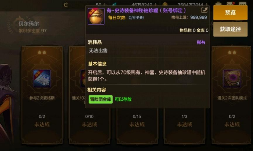 果然这还真的是罐子开罐子啊,从这个罐子中开出70级史诗罐子的概率仅有1%,虽然这概率很感人,但这也确实是有70级史诗存在的。至于能不能开出这个70级史诗装备,就看大家的运气了,至少这似乎比刷深渊爆出史诗的概率要高一点。而且开出了神奇罐子也是不亏的,要知道现在的神器装备是真的贵,开出一件神器也是赚大了。所以说大家千万记得在周一每周任务刷新后进行翻牌开启任务,不然可能错过白送的70级史诗装备了。