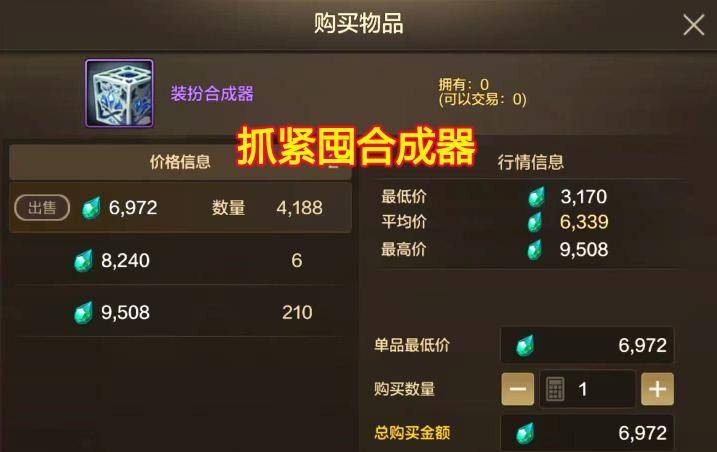 重点提醒:如果要合天4的兄弟们,趁着装扮合成器才6000多泰拉!赶紧囤一点,一些大区已经开始回暖,等天4正式上线万多泰拉可就难受了。
