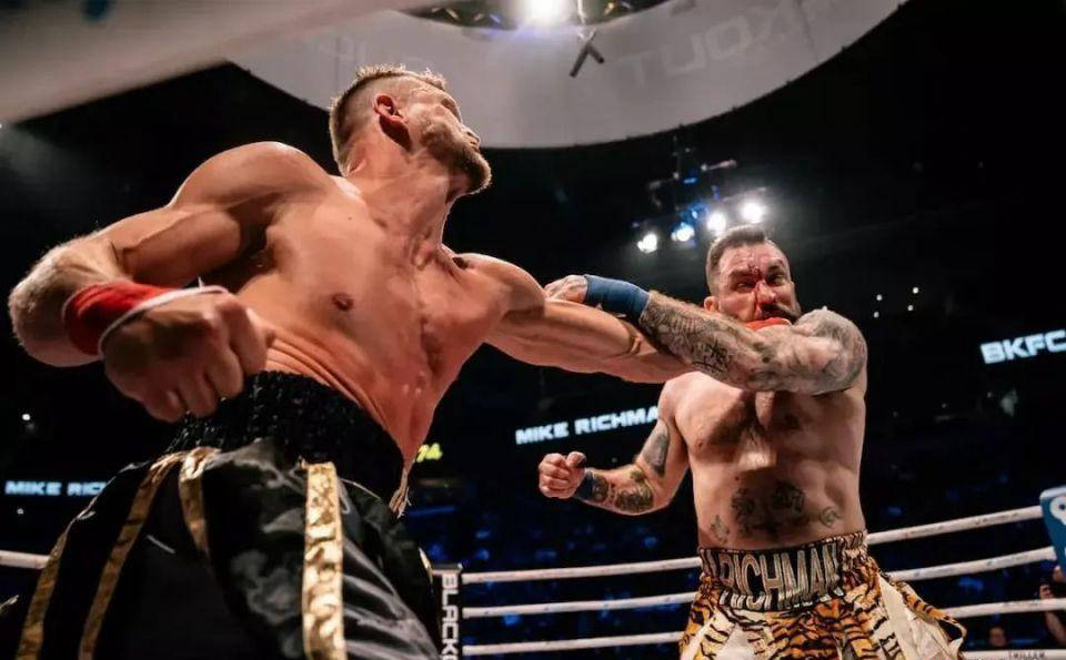在5月10日于美国举行的BKFC裸拳赛事中,发生了一场令人震惊的激烈对决。这场比赛由美国两名顶尖拳手里奇曼与戴尔展开角逐,现场气氛紧张而热烈。