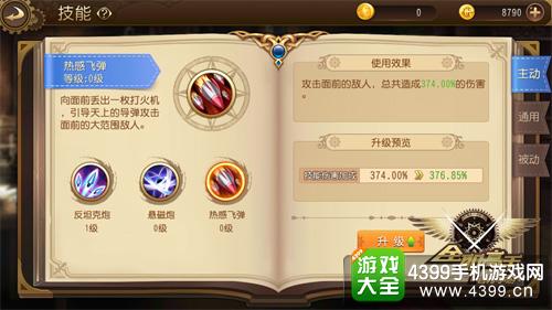 热感飞弹:攻击面前的敌人,总共造成374%的伤害,伤害随技能等级提升提升。