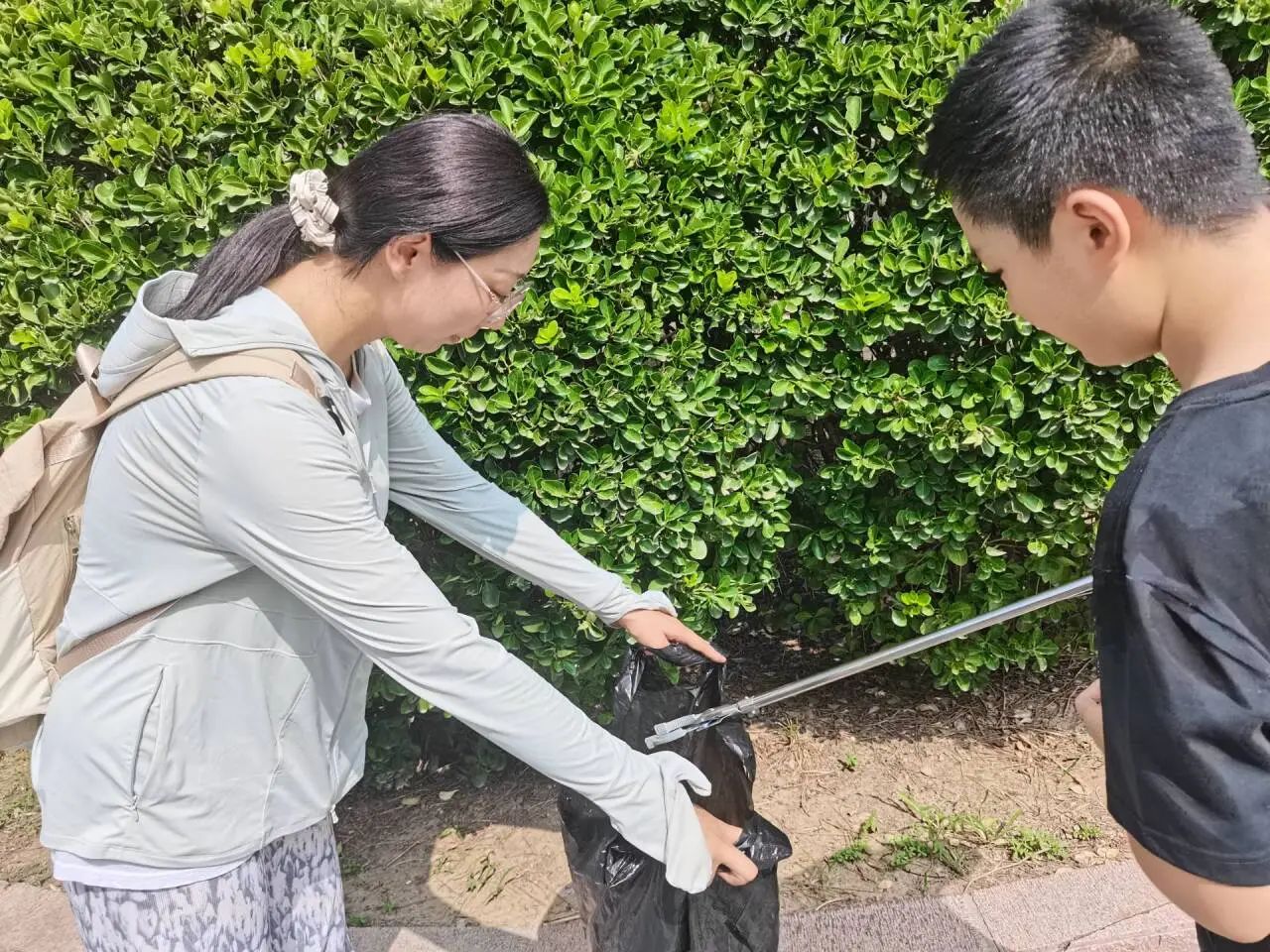 活动中,大家分成小组,沿着黄河岸边的步道开始了徒步清理行动。老师们以身作则,弯腰捡拾隐藏在草丛里的塑料瓶;同学们则纷纷操控夹子,将塑料袋、废纸等垃圾一一收入垃圾袋中。