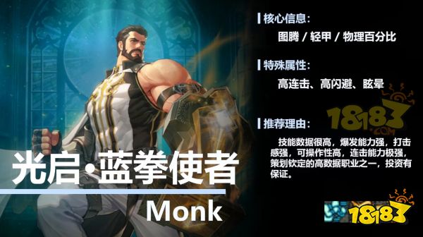 蓝拳技能数据很高,爆发能力强,打击感强,可操作性高,连击能力极强,策划钦定的高数据职业之一,投资有保证。