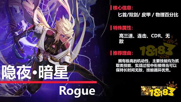 刺客拥有极高的机动性,主要技能均为抓取类技能,实战过程中衔接得当可以保持长时间无敌,技能循环优秀。