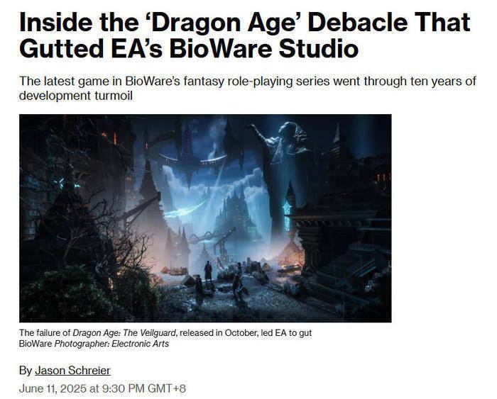 我在此前的怪话中就提过,因为剧情肤浅、缺乏有意义的选择和冲突,我对《龙腾世纪:影障守护者》颇为不满,作为系列老玩家更是痛心。恰好在不久前,我读到彭博社刊载的一篇长报道《摧毁美国艺电旗下生软工作室的“龙腾世纪”大翻车内幕》(Inside the Dragon Age Debacle That Gutted the EAs BioWare Studio)。
