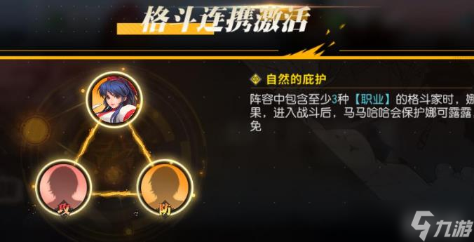 最主要的就是格斗的阵容羁绊,是要上场才能获取的,这个时候玩家例如触发自然庇护放上三个职业的角色就能让露露的治疗提升伤害减免增加。