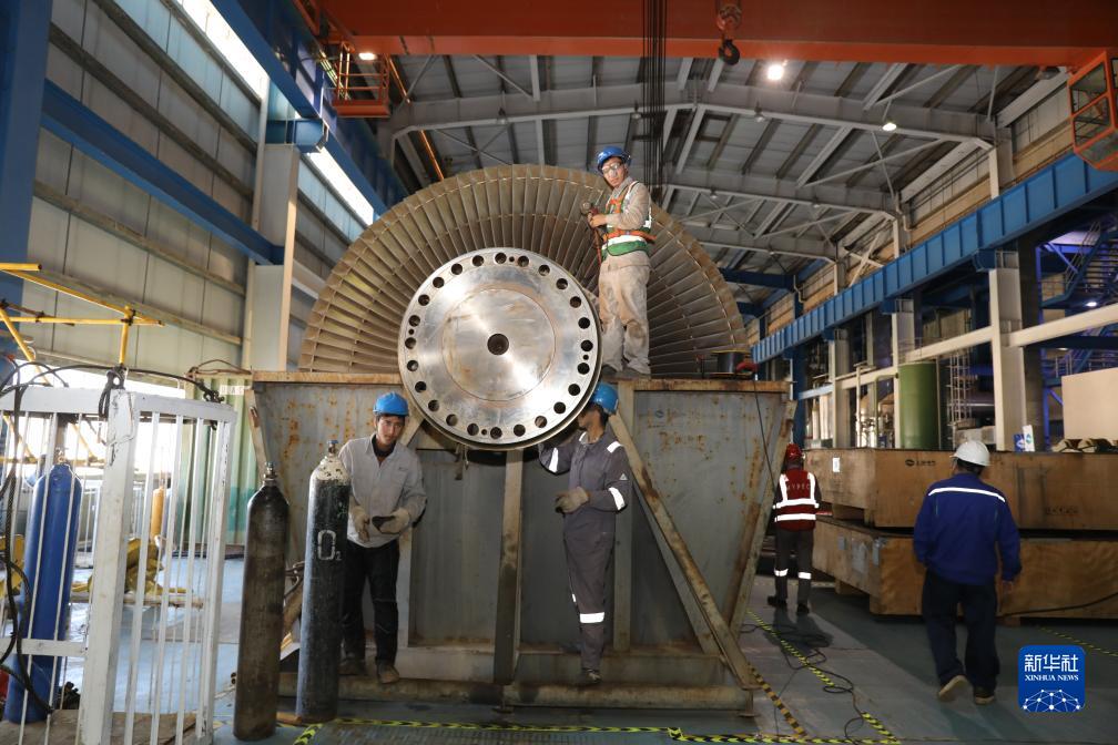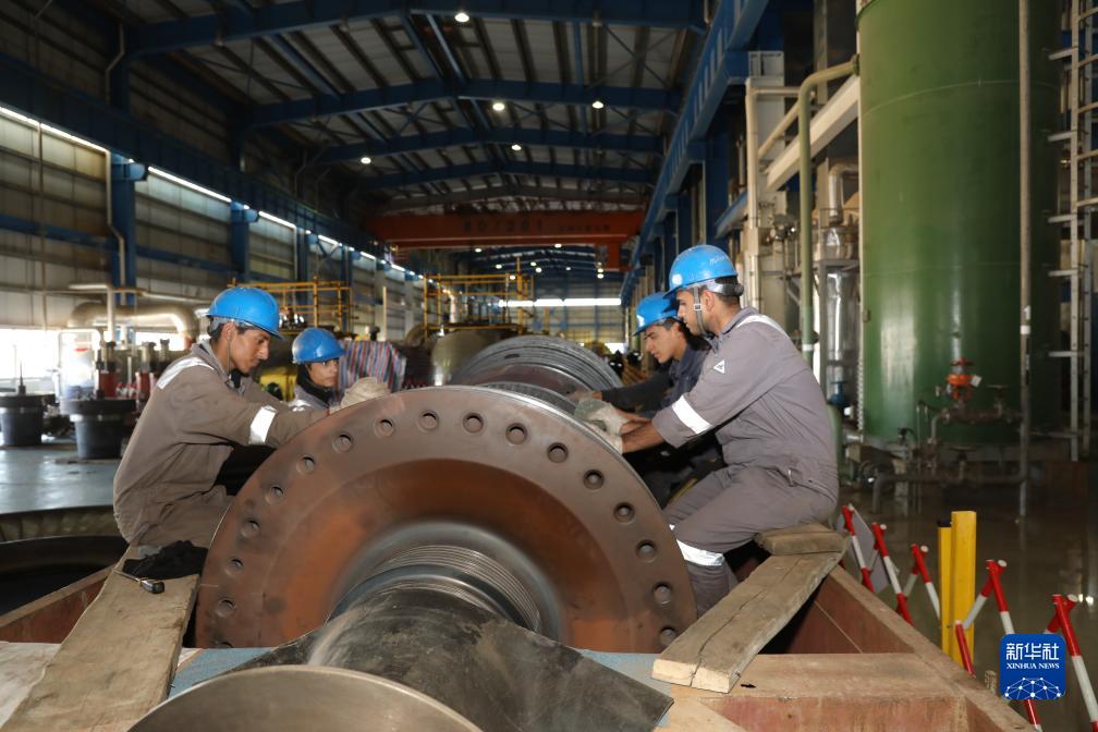 11月21日,在伊拉克瓦西特省,伊方员工在华事德电厂工作。新华社发(哈利勒达伍德摄)