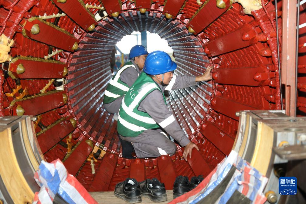 11月21日,在伊拉克瓦西特省,中方员工在华事德电厂工作。新华社发(哈利勒达伍德摄)