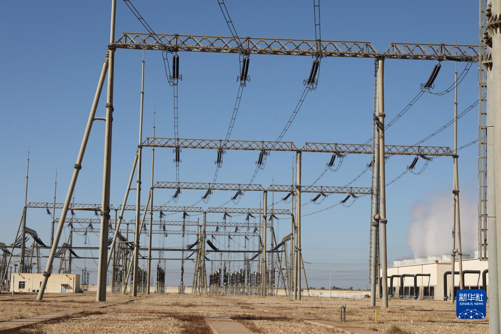 这是11月21日在伊拉克瓦西特省拍摄的华事德电厂的电力传输设备。新华社发(哈利勒达伍德摄)