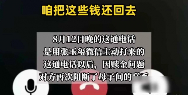 电话那边的人感觉到周女士油盐不进的态度,一下子就挂断了电话,后来任凭周女士怎么打,也没再联系上儿子。