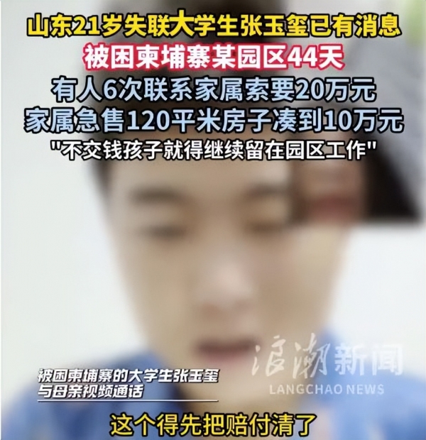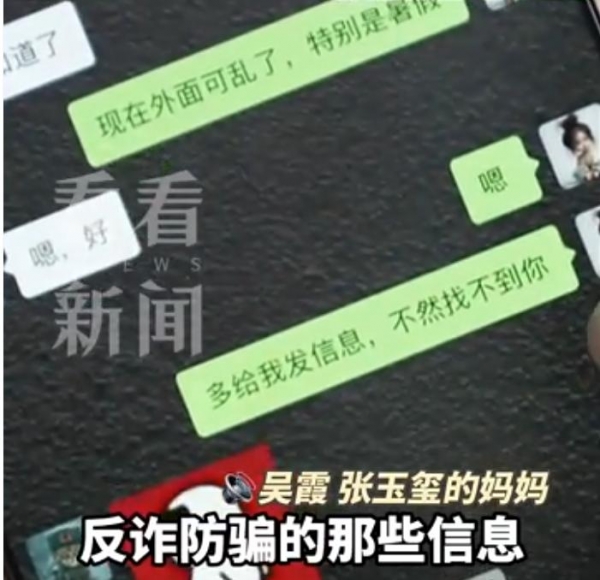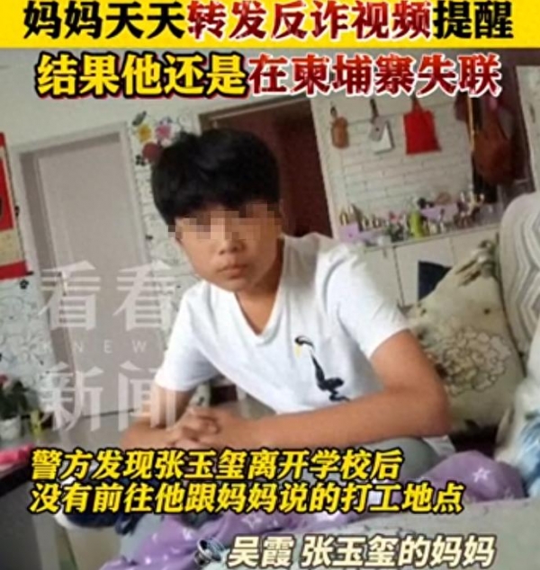 她的儿子张玉玺如果没有被骗到园区,本应该是一名大一新生,享受着自己的大学生活,可能是为了想要减轻家庭负担,于是他决定趁着暑假去打工。