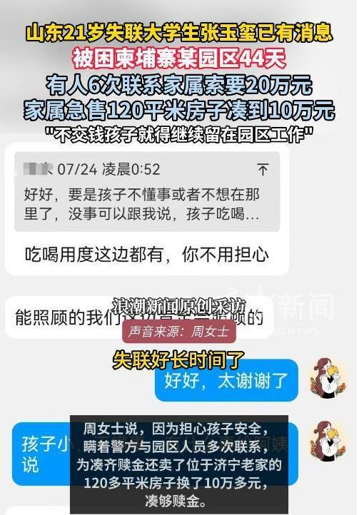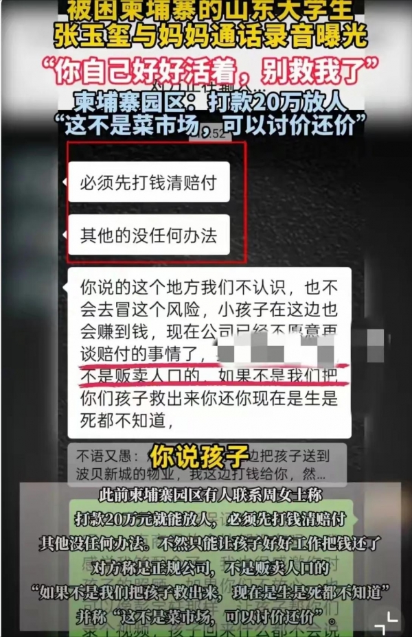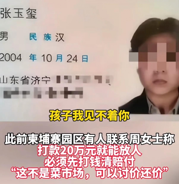 在儿子失踪的这段时间,园区的人曾经和她联系过,这些人自称是正经人,不是什么拐卖人口的,见到张玉玺被人骗到这里,出手相助,拦住了人贩子,如果不是他们,周女士到现在都找不到儿子。