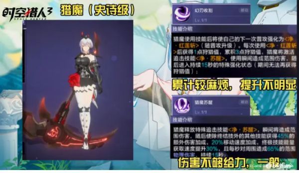 最后猎魔则是一个各点都比较中庸的角色,对群和对单输出都还行但是都不突出,操作难度上也算是中等不难也不是上手就会,所以就不多说。