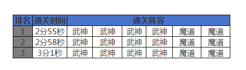 相较上周的成绩,本周奥兹玛挑战排行纪录再次提升了一秒钟,从2分56秒提升到了2分55秒,非常恐怖,而阵容也是老一套的四武神+两魔道,这是当前版本冲榜速度最快的队伍搭配了,武神具有出伤快无视干扰的特性,而魔道作为同时拥有超一线输出和一线辅助能力的完美职业,搭配武神相得益彰,成为这个时期的黄金搭档。