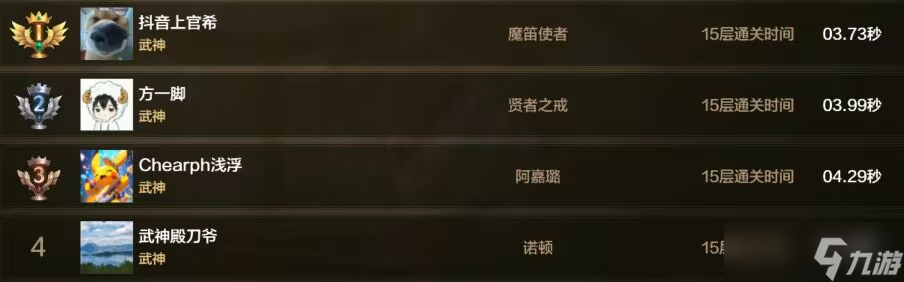 上官希的纪录依旧无人可破,武神职业也在本周诞生了第二位突破到3+的玩家,试炼之塔已经成为武神职业的玩具,其他职业只能望其项背,笔者往下翻了很久的排行榜,直到第43名,才出现了除武神外的其他职业,是一个6.83秒的大枪玩家,真希望试炼之塔加大点难度,给其他职业一点希望。