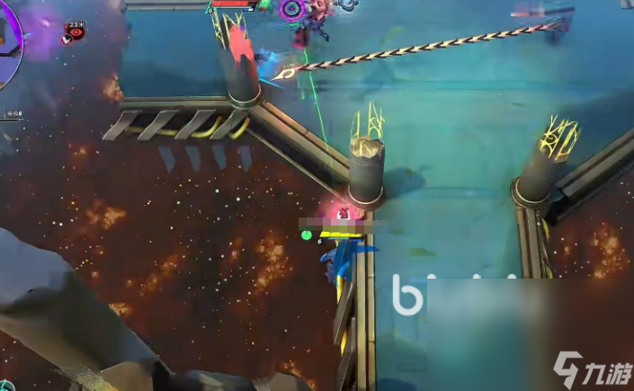 我们在空中时,其实英雄也不会立刻下落摔死,而是在深渊上面匀速坠落,大家可以观察好下图中英雄头顶上的红线,一开始会是弯曲的,等到最后完全拉成直线后,才会真的摔死。