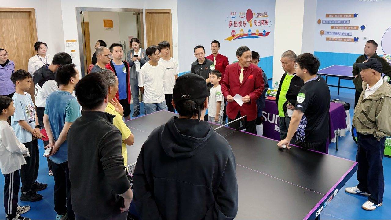 有的物业管家不太了解乒乓球比赛,就把有经验的业主组织到一起,开起了“共创会”,一起把赛制、流程定下来。有位业主曾经是职业乒乓球赛裁判,特地穿上了当年的红西装,为街坊邻居评判比赛。