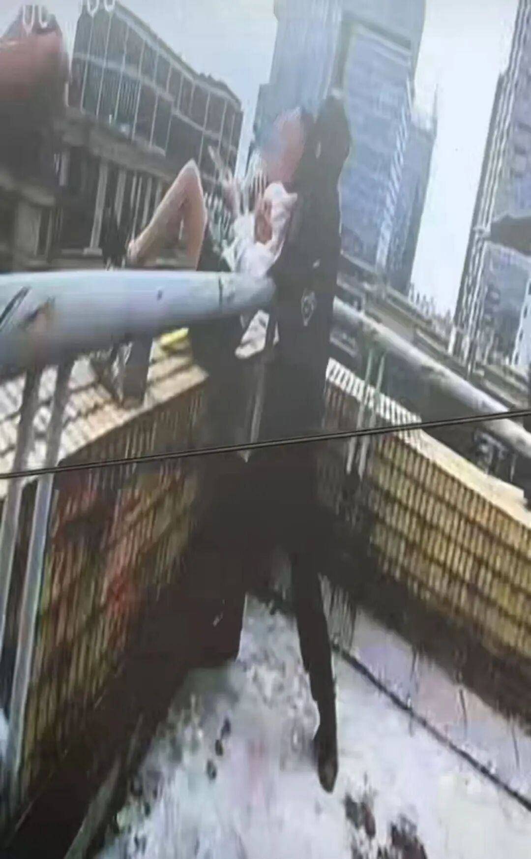 原来,这名女子遭受诈骗,损失了200万元,导致情绪崩溃。为了赢得时间,物业工作人员劝解她不要做傻事,大家合力转移其注意力,而绿城物业保安班长于凯悄然靠近,突然猛冲上前,一把抱住女子,紧接着大家一拥而上,共同将女子拉回安全区域。