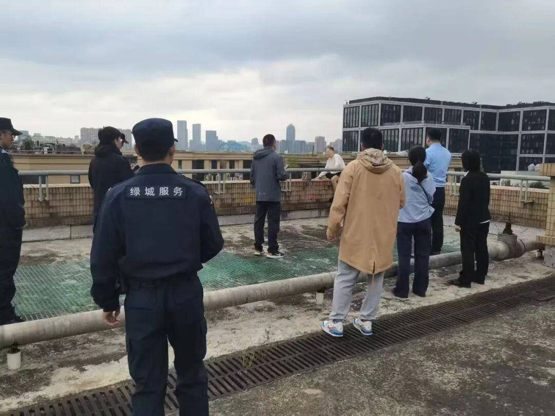 10月21日中午,春江花月小区西侧楼顶忽然传来一阵哭泣声,这引起了正在巡逻的保安的警觉。他迅速上楼,发现一名年轻女子正坐在楼顶边缘,情绪极度激动,随时可能坠落,情况危急。