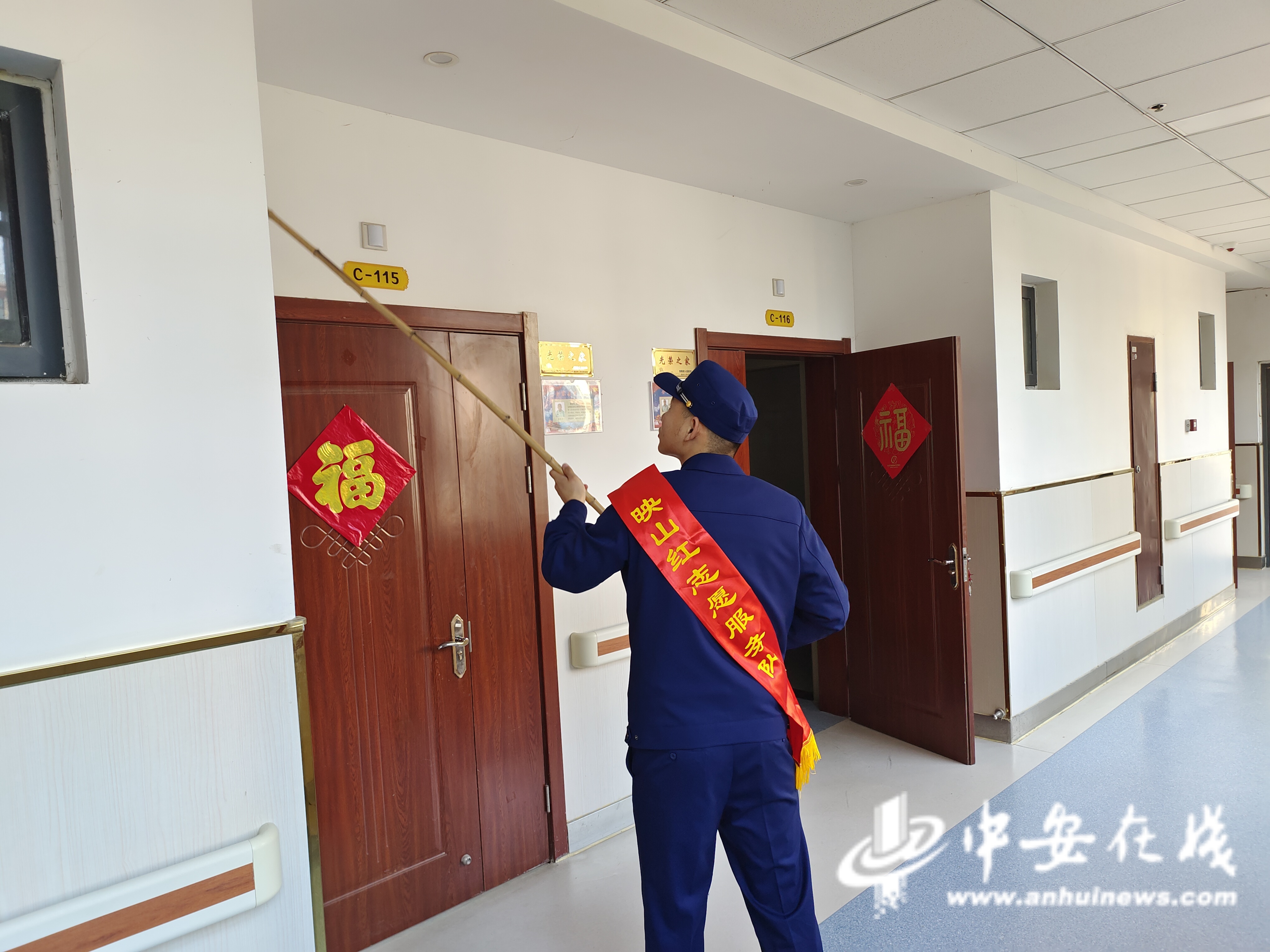 “他们是来光荣院最勤的一群人,逢年过节来,平时也来,一来我们都被闲在那了,什么活累什么活脏都抢着干。”金寨县光荣院副院长刘丽笑着说。在光荣院,队员们像在自己家一样,一进屋就开始忙起来,打扫房间、理发、剪指甲,和老人们拉家常,陪老人们散步,把温暖送到老人们心坎上。