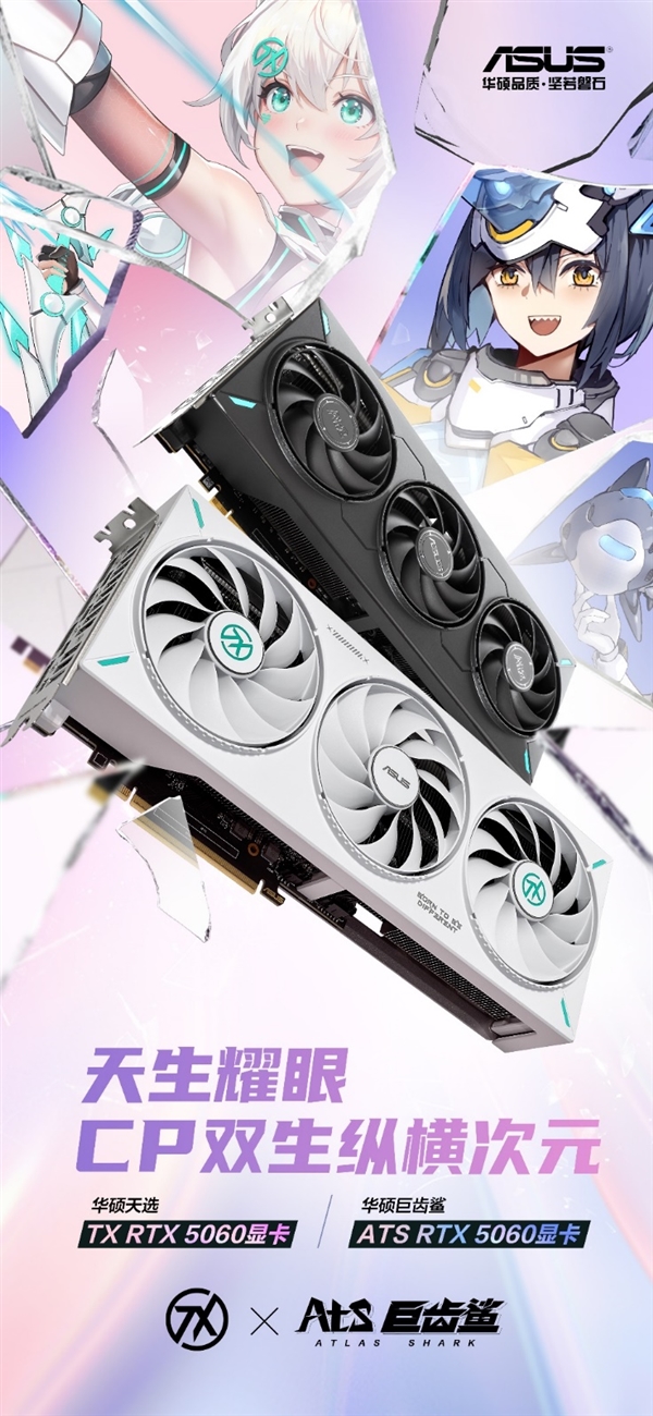 众所周知,借助NVIDIA GeForce RTX GPU升级到更先进的AI体验,能够加速你的游戏、创作、日常工作和开发!618是时候加入新一代的高能体验,获得更先进的AI技术!华硕RTX5060系列拥有黑白双色系的“双子星”,包含白色系的天选TX系列显卡和黑色系的AST巨齿鲨系列显卡,带给了玩家个性化选择,是618年中大促升级甜品显卡的上佳选择~